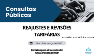 Estão abertas as Consultas Públicas 08/2025 sobre os pareceres técnicos da revisão tarifária do município de Terra Rica e as Consultas Públicas 09/2025 e 10/2025 sobre os pareceres técnicos de reajustes tarifários dos municípios de Abatiá e Sertaneja.